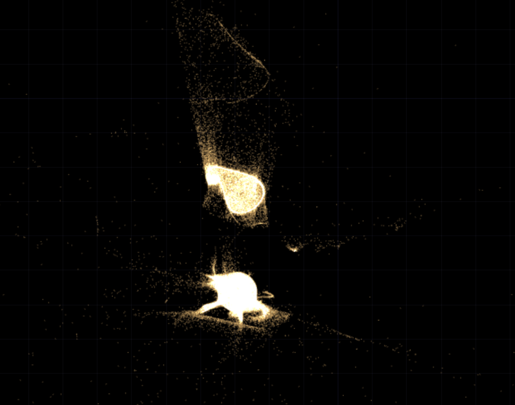 I initially built my system on MediaPipe for body tracking, but then when I shifted the system to the motionlab, I had revelations. The system worked fine for a laptop but for it to work in an open space and a big projection screen, it would need a camera directly in front of the participant’s face (and the screen) to work, which sounds horrible for an immersive experience. So, I switched to blob detection through the Orbecc ceiling camera. That took a while to get right. It wouldn’t even detect me and I couldn’t figure out why so I made the very obvious assumption that it hates me lol. Turns out it needs something to reflect off of and I was wearing all black.