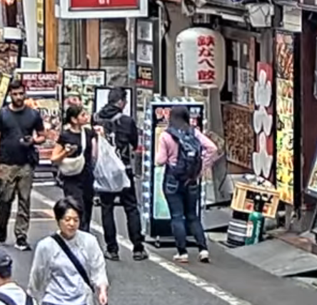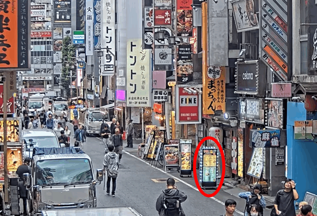 There was a famous livestream of a major Tokyo intersection, but this seemed too unpersonal and generic. A smaller intersection, while more personal, was still just as generic. Although as a note, barely anyone ever jaywalked in the streams I watched, even when there were clearly no cars at all. I ended up going with a stream of people walking down a street. There were shops, restaurants, many signs, and it all looked very… Japanese. I chose this one because, on top of looking very characteristic for Japan, there was a sign in a great location for observing. Additionally, I watched from 12-1pm (their time) so there was a lot of activity happening. See below for the sign in a screenshot of the livestream.