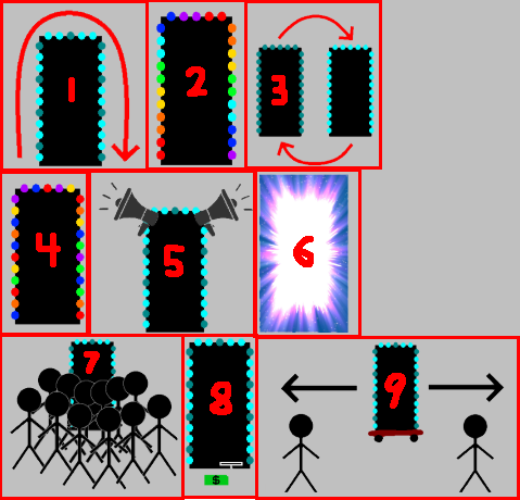 What made this sign a good candidate to observe though? Firstly, as I said above, it’s framed in a way where you can tell when people interact with the sign. Many of the other signs aren’t on street level, and sense we can’t see the exact location people’s eyes are looking, you can’t tell which sign they are looking at. The sign being on the ground makes it very clear when people look at it. Next, although you can’t really tell in the screenshot, this sign has lights around it that flash in a particular way. This was the “system” what people would interact with. Below is a mockup of exactly what the flashing light pattern looked like: