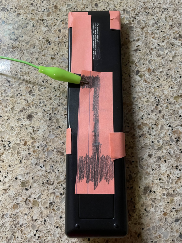 This worked somewhat well but because not everyone holds a TV remote with their hand flat against the back, it may not work for all people. You could use more paper and pencil to get more possible contact points, but this got the job done.