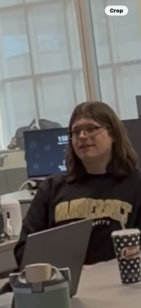 The last hour was me messing with an app to use my camera as the webcam (Eduroam ruined my dreams there). So I grabbed a webcam from the computer lab the day of. (sorry Michael) I knew I was going to choose one lucky viewer to hold the camera, and choosing Alex was improvised I just thought he would be most excited to hold it. I was pleasantly surprised that there were expressions of joy while watching, as when I showed my partner, she was scared and mad at me. I am glad my stupid sense of humor worked out. 🙂
