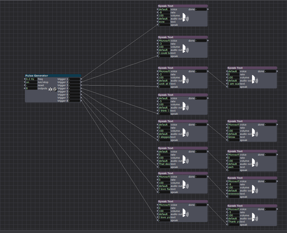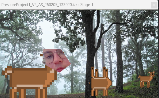 I was far too hung up on the idea of making sure people pay attention; original ideas had the machine barking orders at the viewers to “not look away”, but that felt mean. So I went with the idea of making everyone so uncomfortable that they forget to look away, like how I feel watching Fantastic Planet. Towards the last hour, I realized that aside from robots talking, I needed user interaction to make this feel whole. However, the cartwheel and petting action didn’t work out as pictured above. So what if the audience could be the deer?